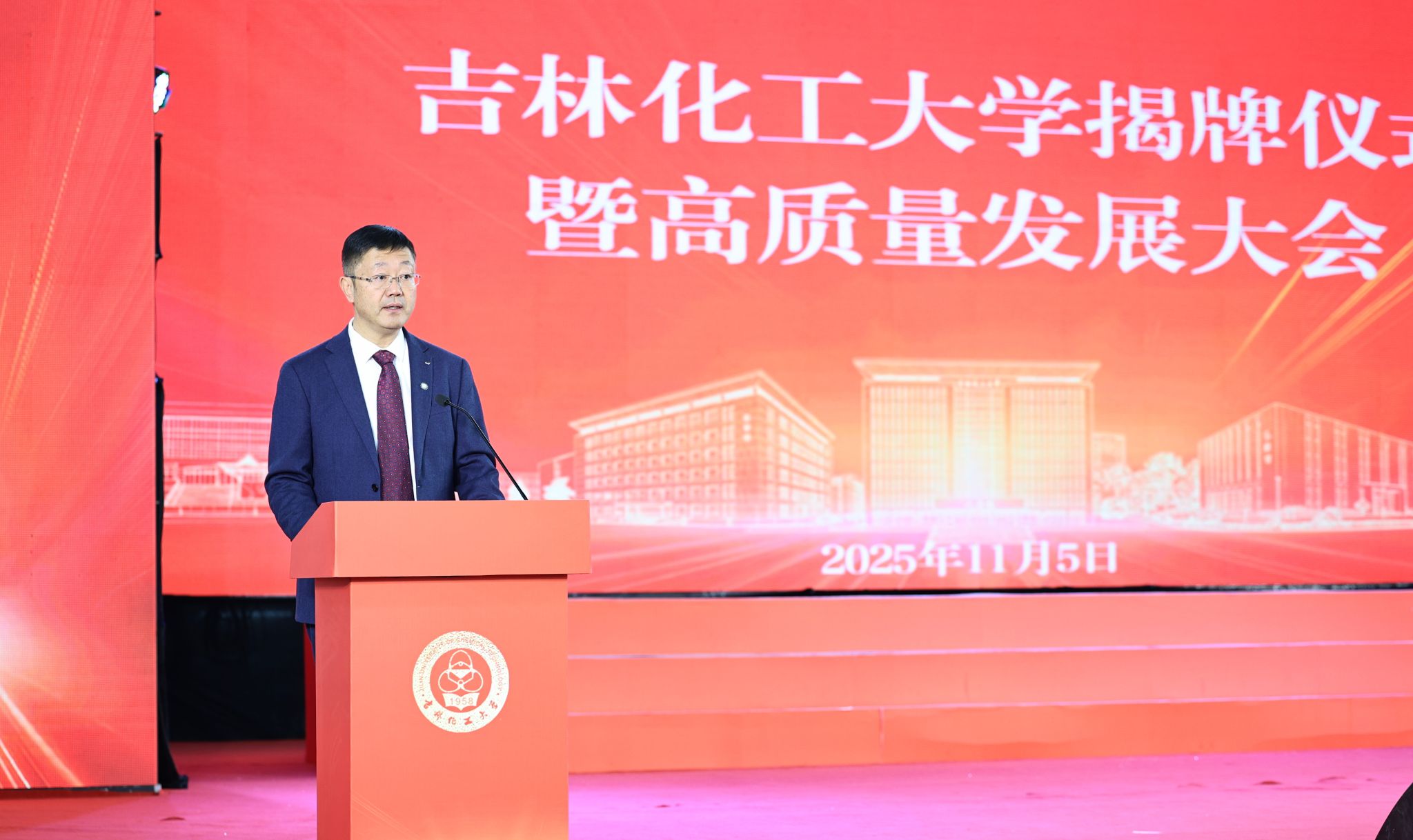 11月5日,吉林化工大学揭牌仪式暨高质量发展大会在丰满校区体育馆举行。这标志着拥有67年办学历史的吉林化工学院正式迈进“大学”时代,开启了建设特色高水平应用型大学的新篇章。