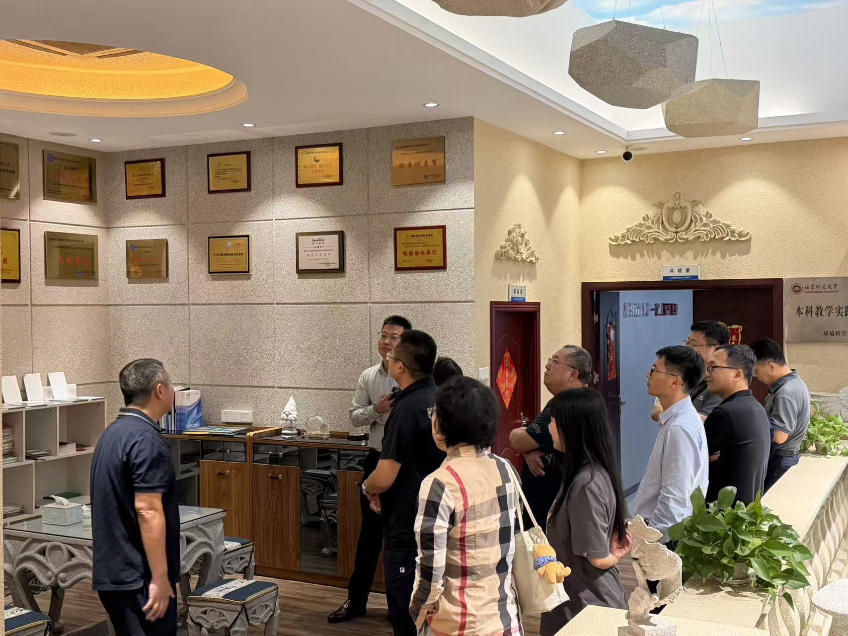 参观企业。活动首站走进福州埃迪特新材料有限公司,该公司负责人为我校福建校友会副会长、 96 级化工工艺专业李华平,在李华平校友的讲解下,了解公司在仿石涂料整体解决方案、仿石原料一站式供应领域的技术创新与产业布局,通过展厅内的仿石建筑模型、荣誉资质墙及先进实验设备,直观感受企业技术实力与行业影响力。